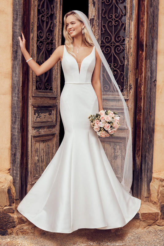 "Alexis" Simple Fit and Flare with Plunging V-Neck Wedding Dress by Sophia Tolli