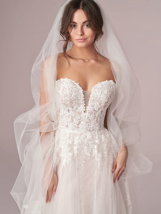 "Katiya" Sleeveless Sheer Bodice Deep Sweetheart Neckline Wedding Dress by Maggie Sottero