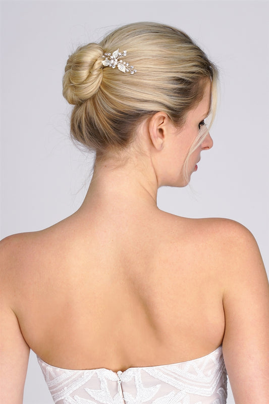 4426HC-I-S Best Selling Bridal Hair Pin with Hand-Painted Silver Leaves, Freshwater Pearl and Crystal Sprays