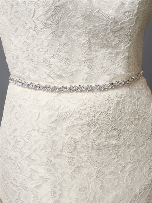 4610BT-I-G Slender Silver Bridal Belt with Austrian Crystals & Ivory Ribbon
