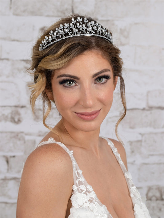 4626T-I-S Regal Cubic Zirconia and Pearl Wedding Tiara