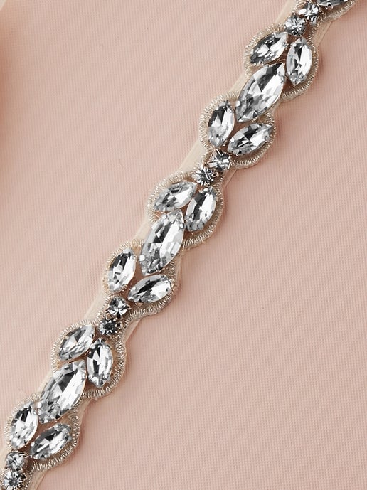 4659Extra Long 24" Narrow Bridal Belt with Clear Marquis Crystal Applique on Ivory Ribbon