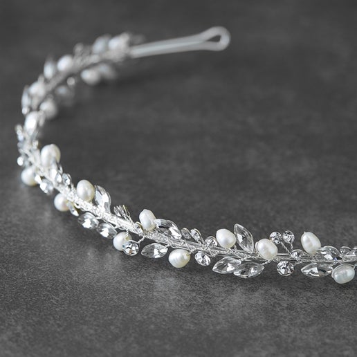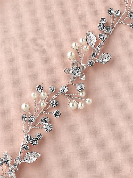 4384HB-I-S Best-Selling Bridal Vine Headband with Hand Painted Silver Leaves
