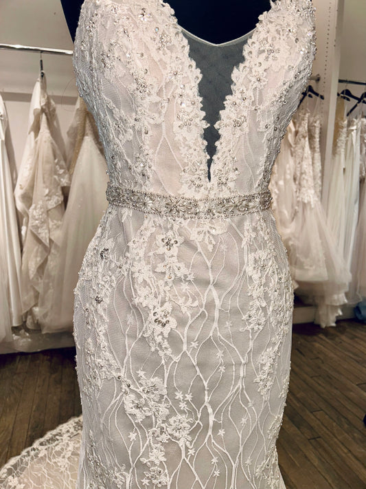 Savannah by Sean Philip A-line Lace Illusion Neckline