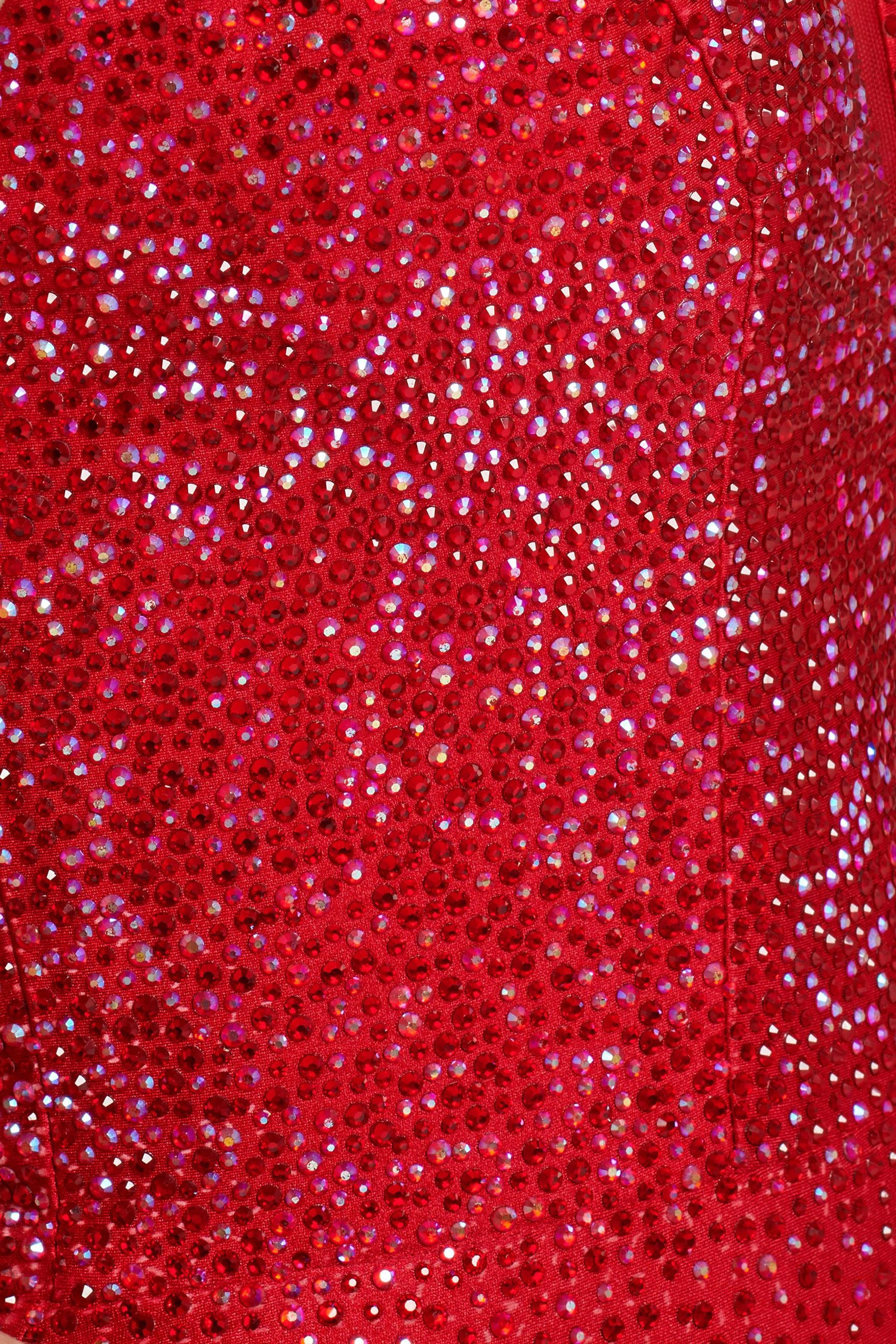 Introducing the 120012 Ellie Wilde Fit & Flare Prom Dress. Made from a luxurious novelty stretch fabric, this sleeveless gown features a plunging V-neck and open bandeau back. With stone accents throughout, this dress accentuates your natural waist and flows into a graceful horsehair hem and sweep train. Experience elegance and sophistication in this exclusive piece from Ellie Wilde.