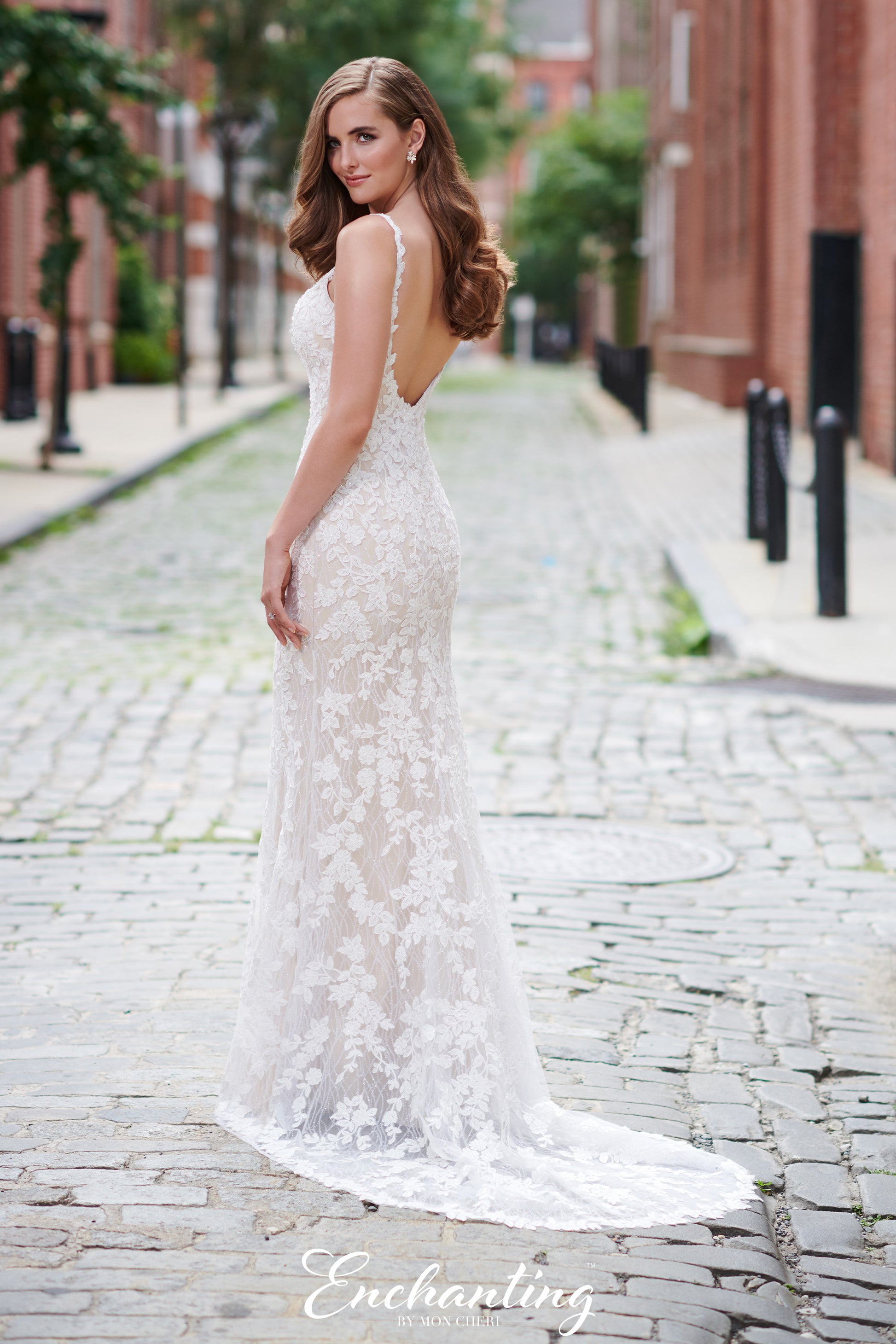 120174 Sheath Lace Wedding Dress by Enchanting for Mon Cheri