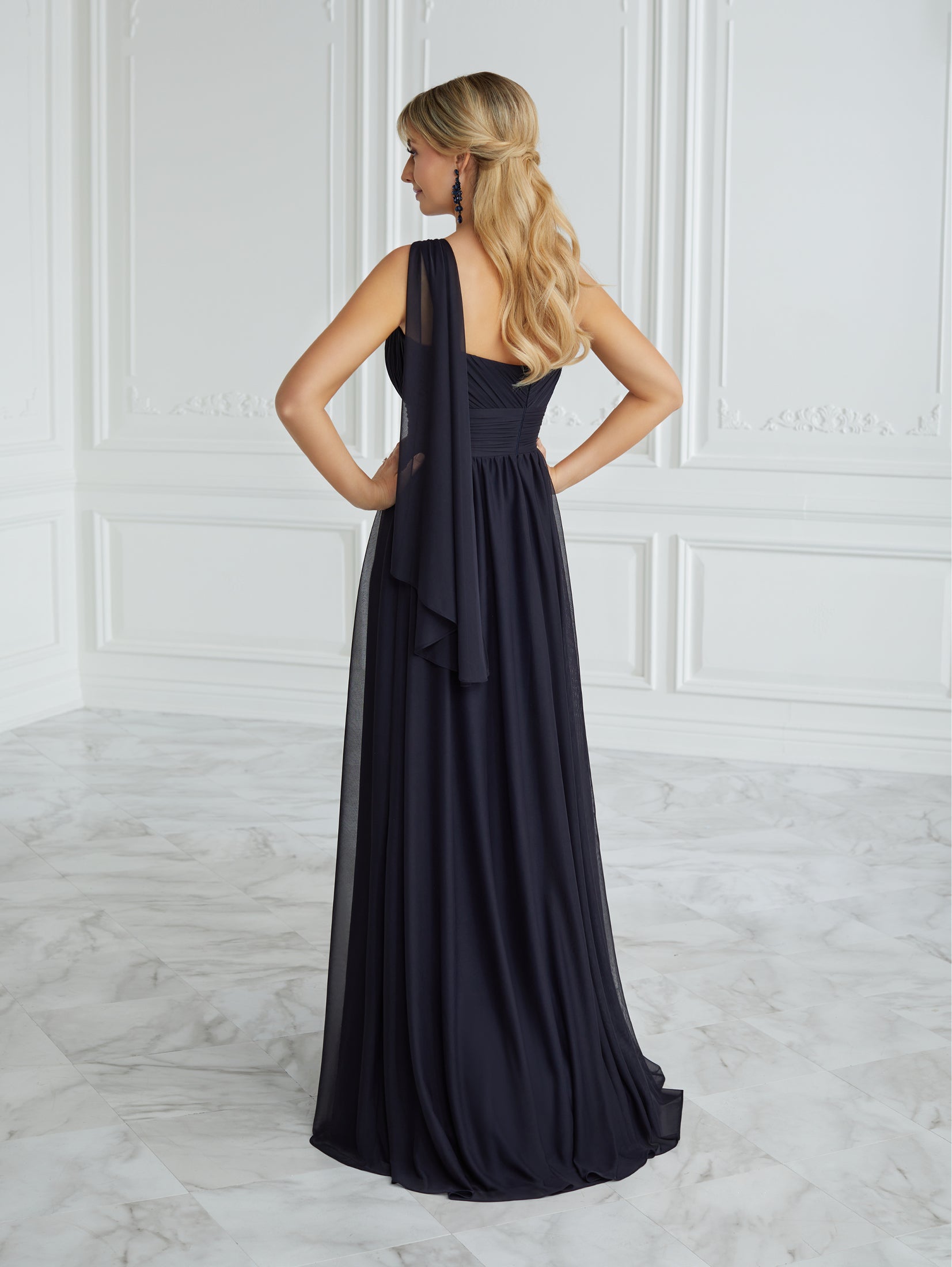 17094 Midnight Black One Shoulder Mother's Dress by Christina Wu