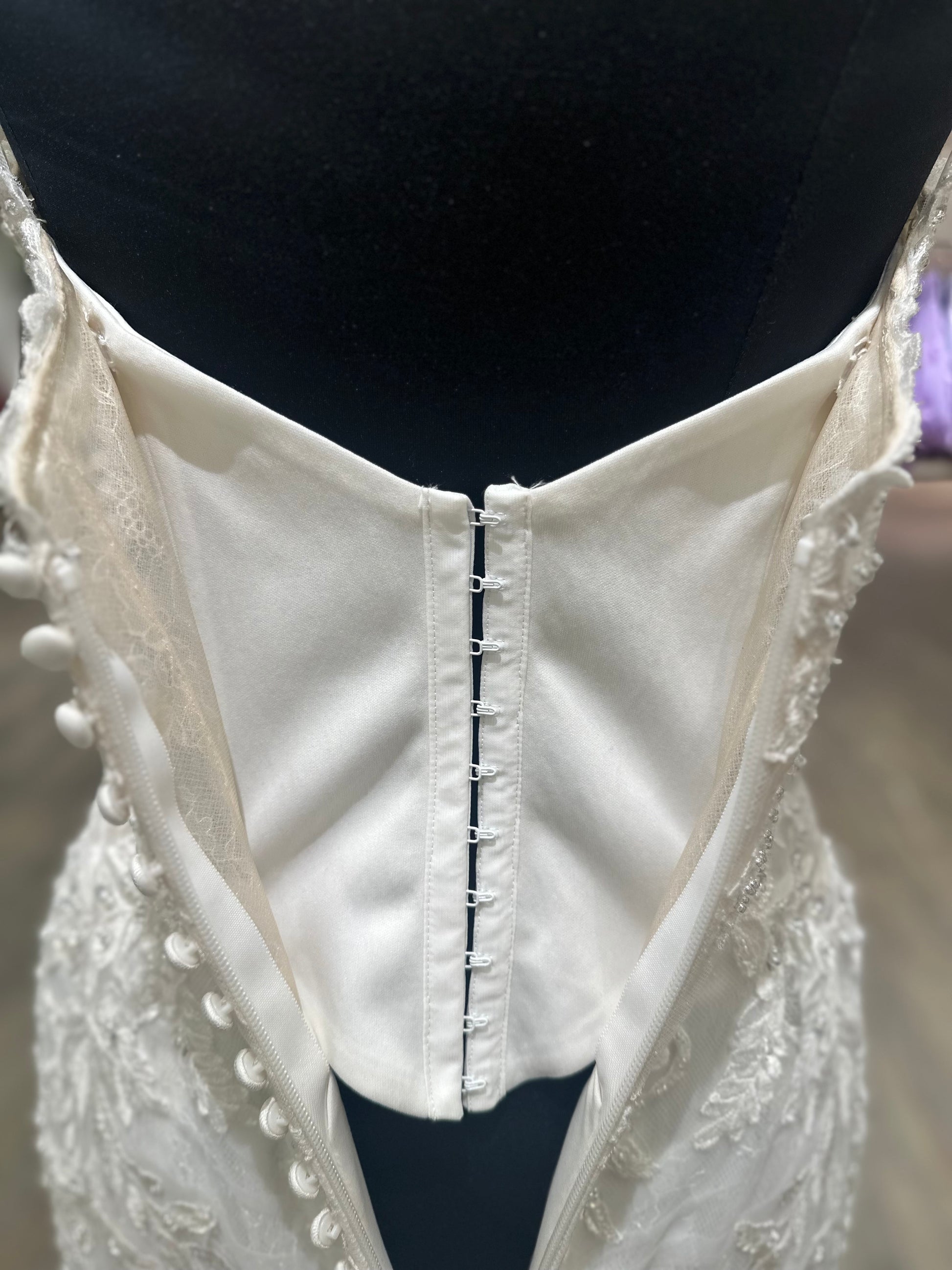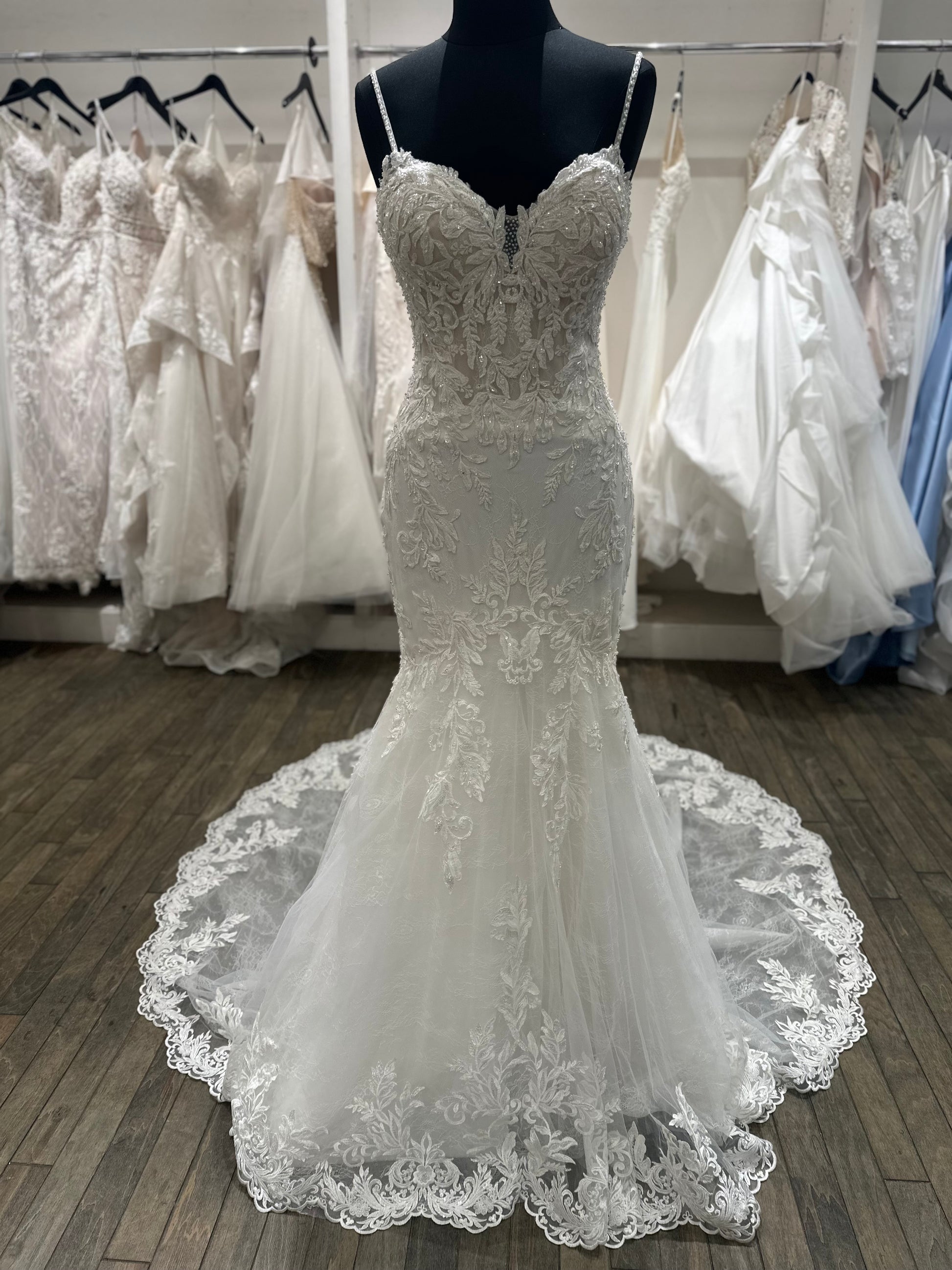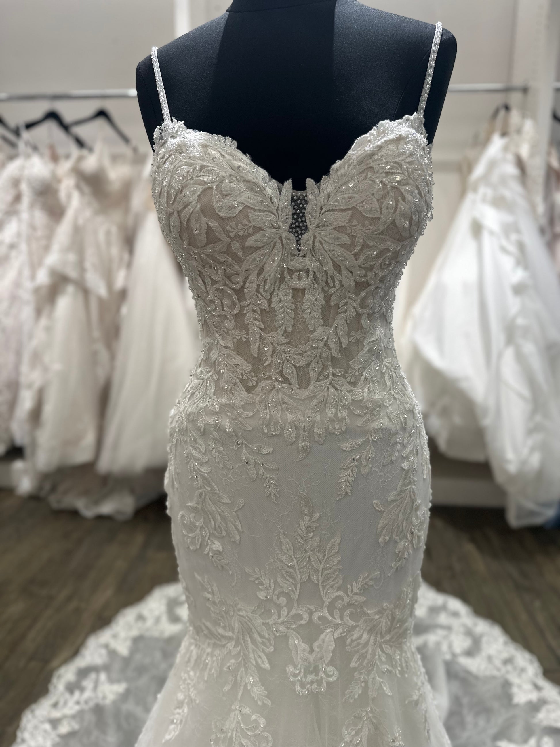 Our bridal samples may have some imperfections. We strongly encourage you to schedule a virtual appointment to preview your favorite gowns!
