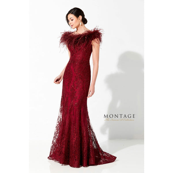 Exude elegance in the 220D22 Fit & Flare Red Off-Shoulder Mother's Dress by Ivonne D. The off-the-shoulder silhouette is crafted of luxurious novelty embroidery, with a quintessentially romantic straight neckline, natural waist, and a slightly scooped back. Stone accents and a luxurious boa complete this look, while the horsehair hem and sweep train finish the look with graceful sophistication.
