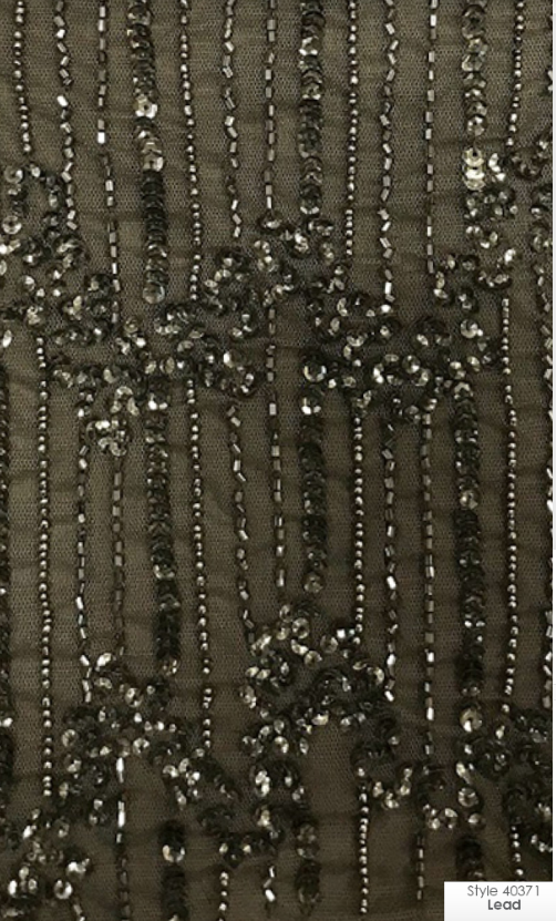 Look elegant and sophisticated in this stunning Adrianna Papell bridesmaid or mother's dress. Its luxurious vertical beading and plunging low neckline & back give it a modern and sexy look, while the beaded button sleeves and wrap front create a beautiful leg split.