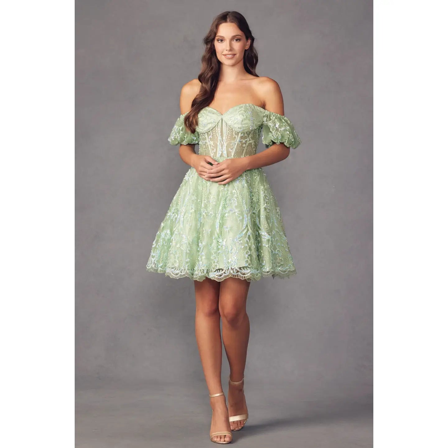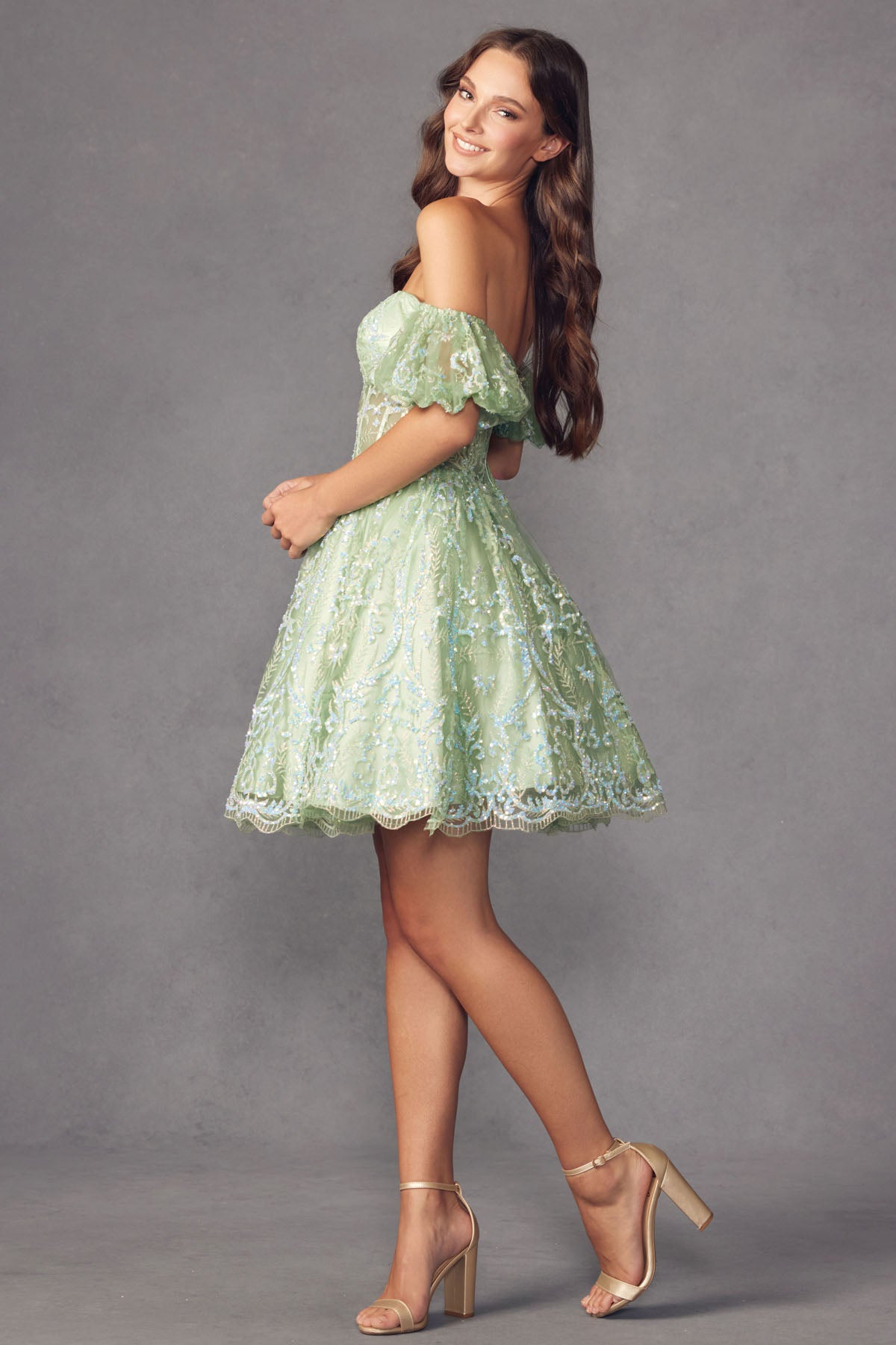 Sweetheart Off Shoulder Short Sleeve Short Dress in Sage or Lilac