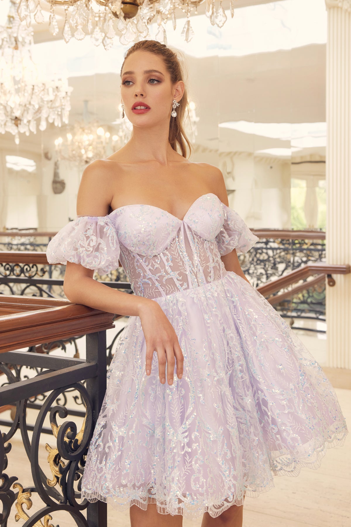 Sweetheart Off Shoulder Short Sleeve Short Dress