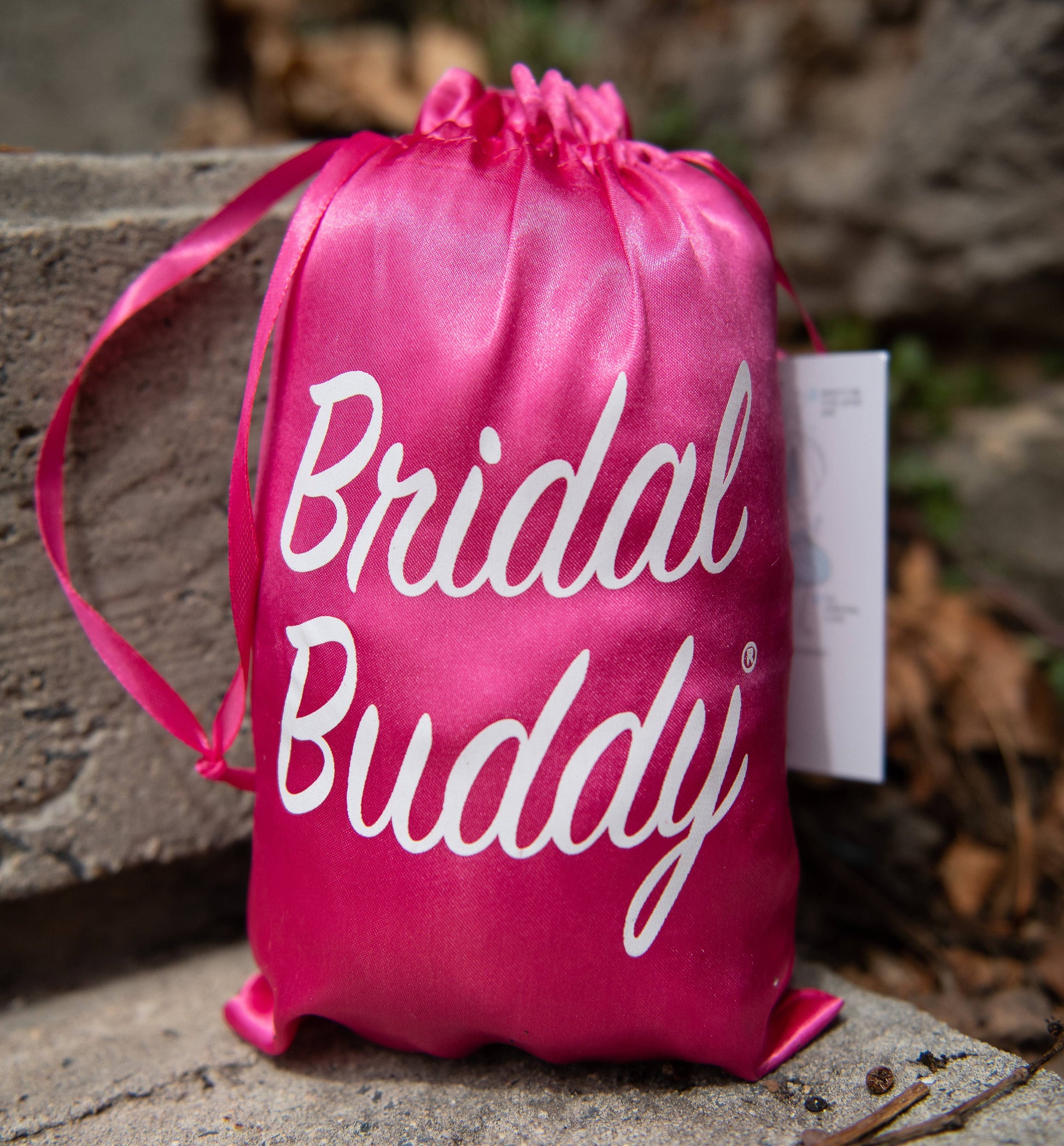 The original Bridal Buddy®! The Drawstring waist was designed to fit all sizes! It can stretch out for 4' and the drawstring waist and toggle can sinch in to a womans waistline. Recommended for sizes 8 and up due to the amount of fabric. Customer only chooses the length. If they are 5'4" or taller: AVG/TALL(40") is the choice. Anyone under that height would use a PETITE length (34") This can bag up the POOFIEST OF GOWNS! GUARANTEED! Works for any Plus size- it stretches out very far!