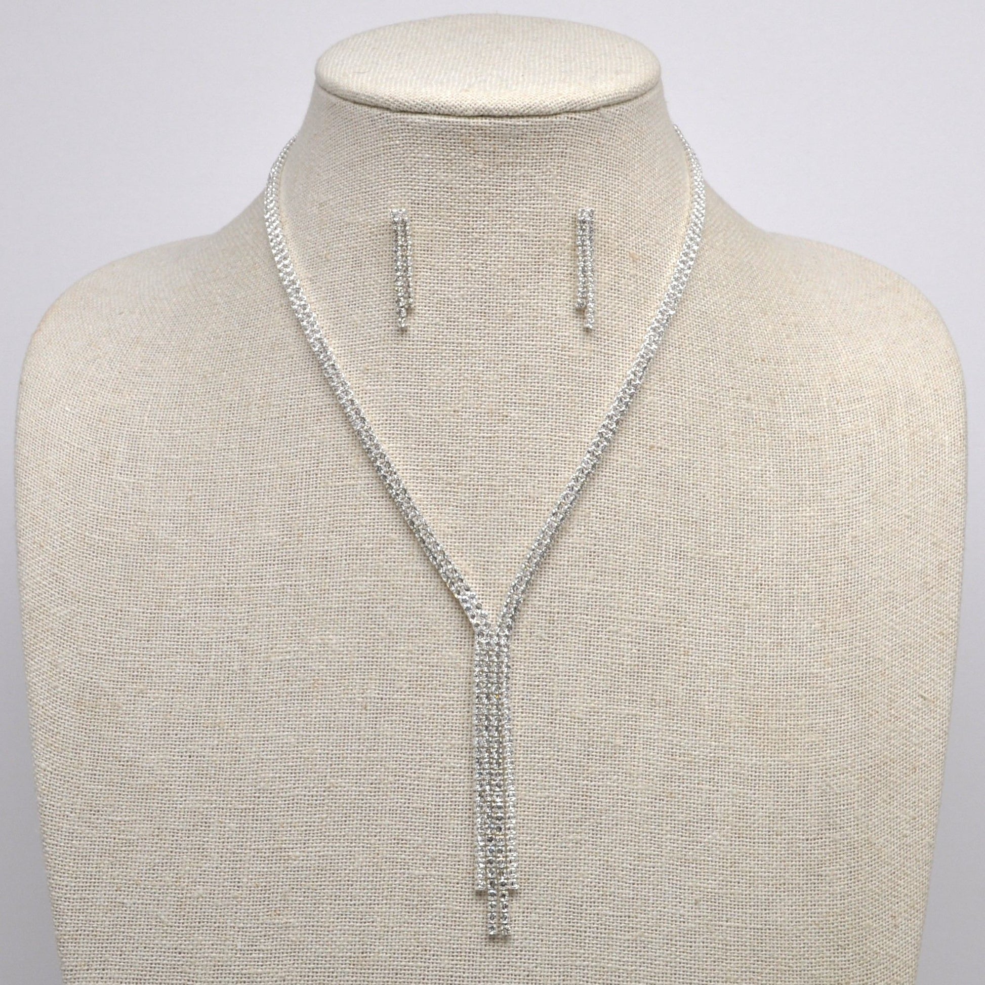 The Crystal Avenue Lariat Silver Necklace Set features a sleek and elegant design, crafted with high-quality silver and a modern lariat style. This versatile set is perfect for enhancing both casual and formal outfits.
