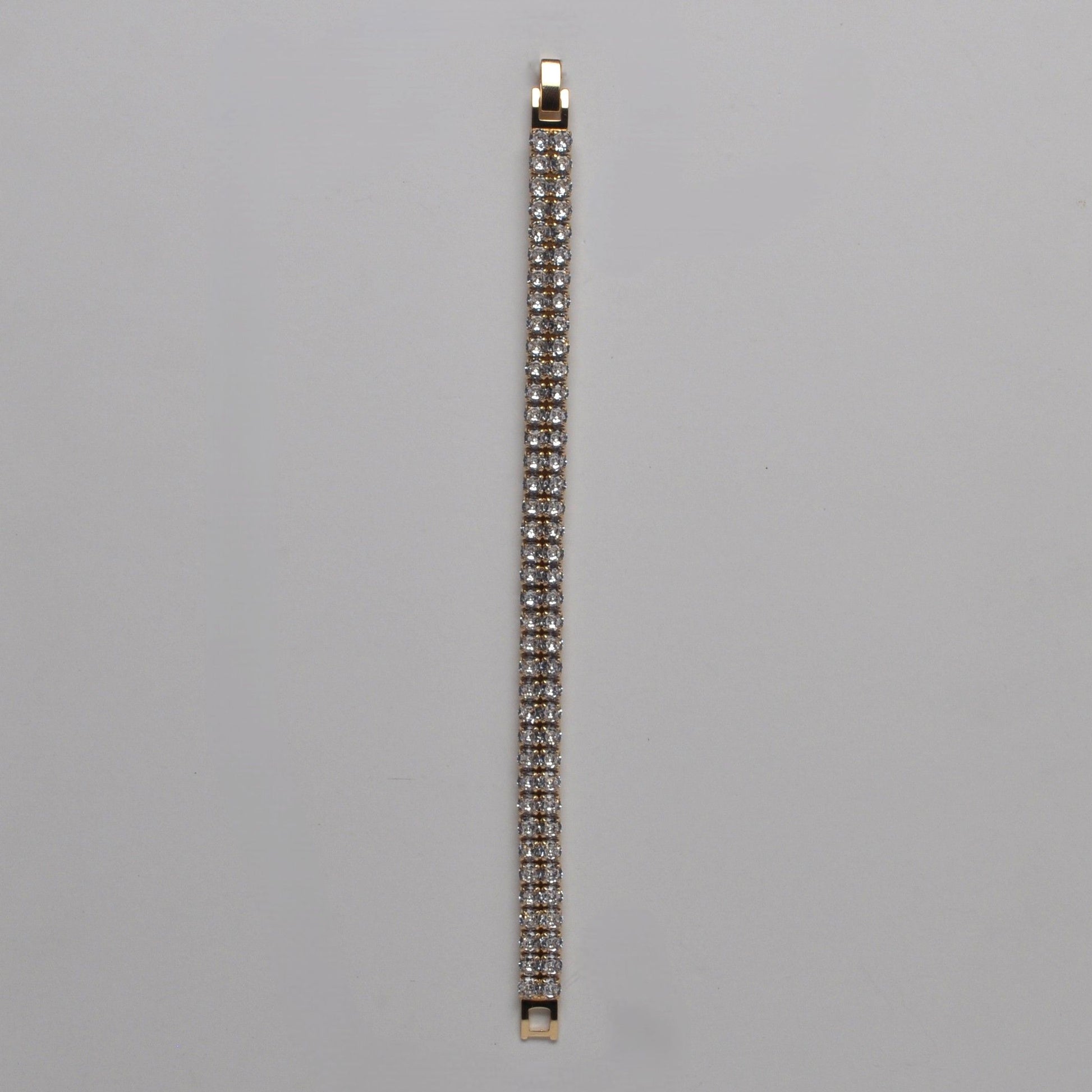 This CZ/S 2 Lines Small Round Bracelet features a dainty design with sparkling stones arranged in two elegant rows. Its adjustable fit ensures comfort and versatility for any wrist size.