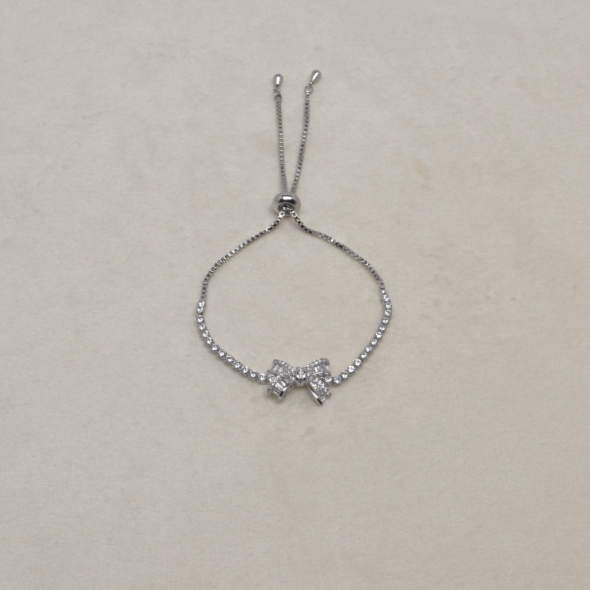 CZ Silver Bow Bolo Bracelet