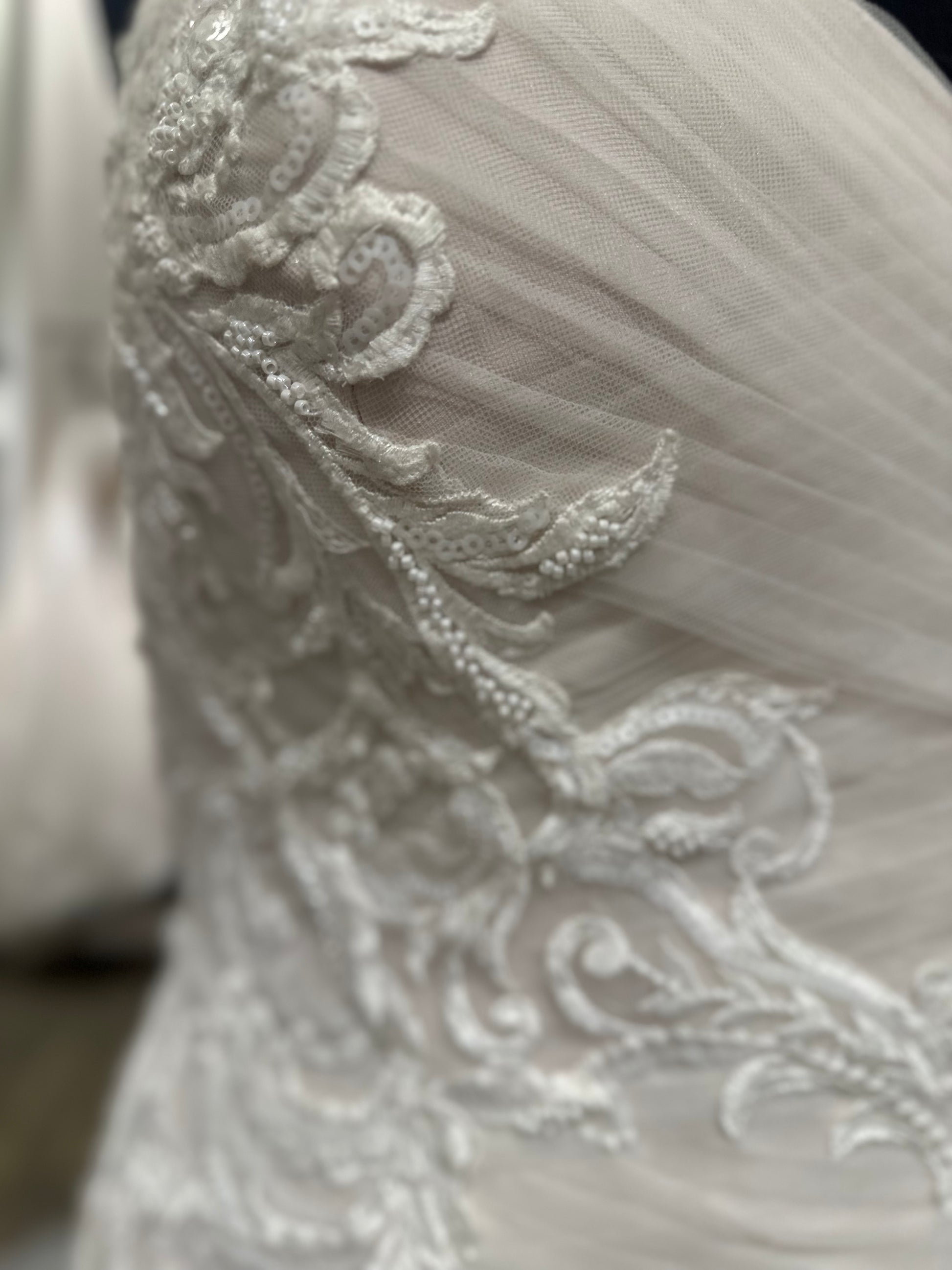 Our bridal samples may have some imperfections. We strongly encourage you to schedule a virtual appointment to preview your favorite gowns!