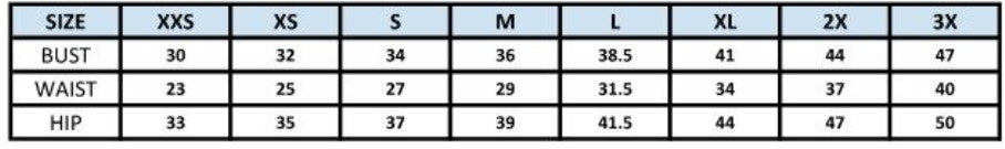 Size: XXS – 2X