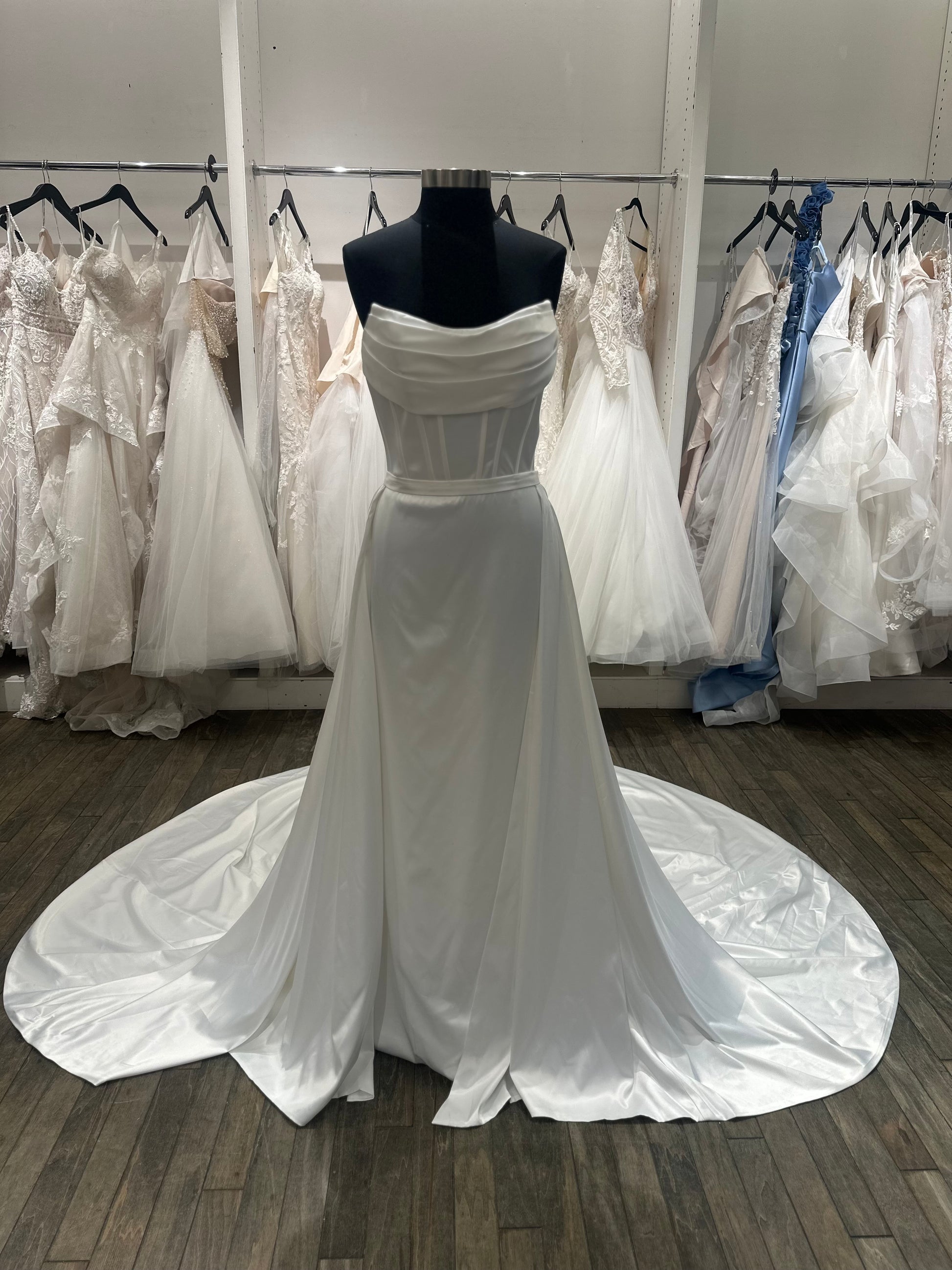 Our bridal samples may have some imperfections. We strongly encourage you to schedule a virtual appointment to preview your favorite gowns!