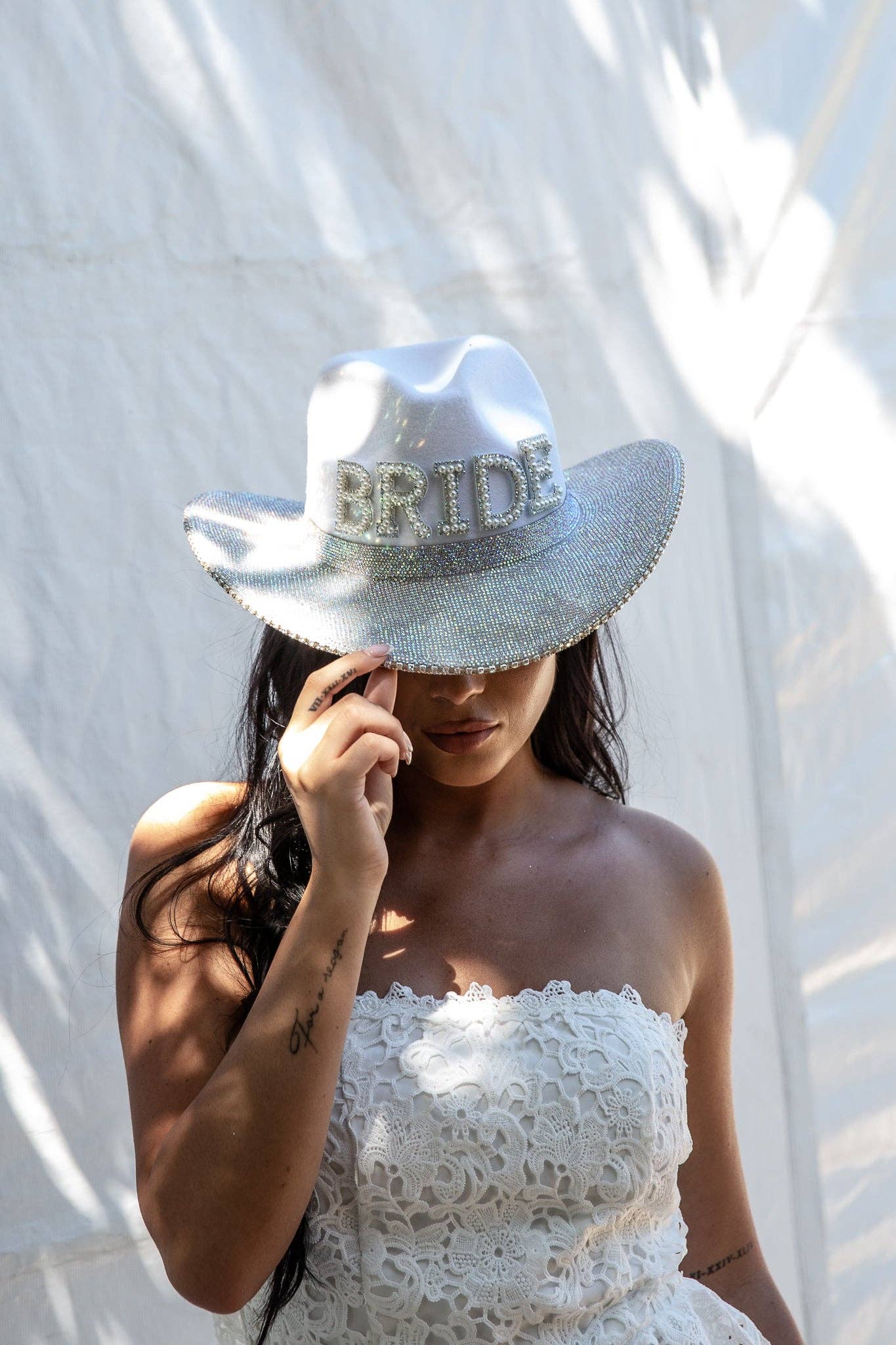 Shine bright for bachelorette parties and other bridal events with this luxury glam bride hat, adorned with thousands of tiny A/B rhinestones!