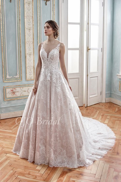 "Mia" Ballgown Sleeveless Lace Champagne Wedding Dress by Sean Philip Bridals