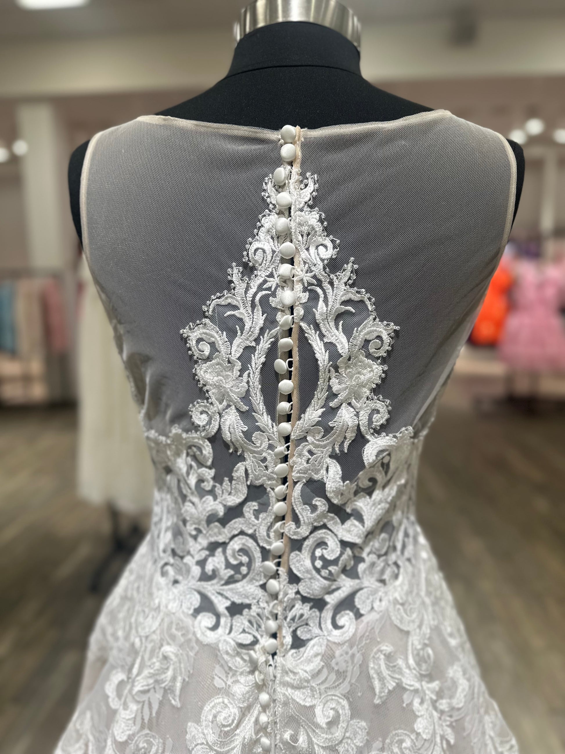 Our bridal samples may have some imperfections. We strongly encourage you to schedule a virtual appointment to preview your favorite gowns!