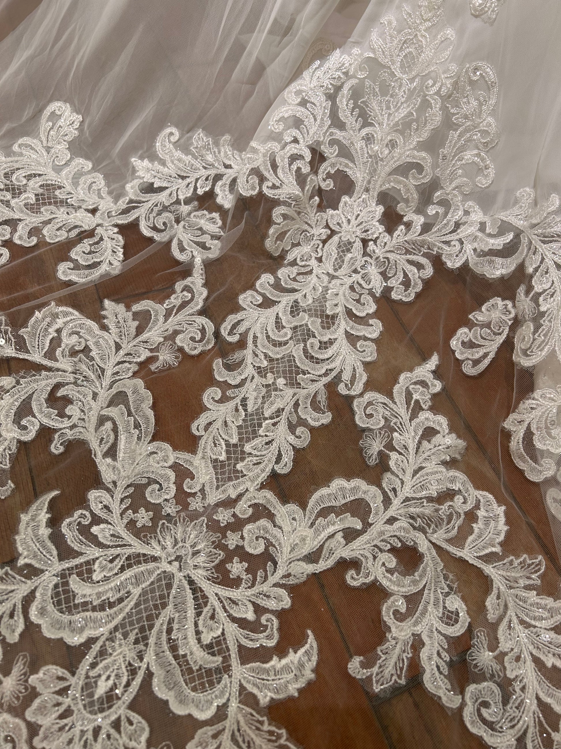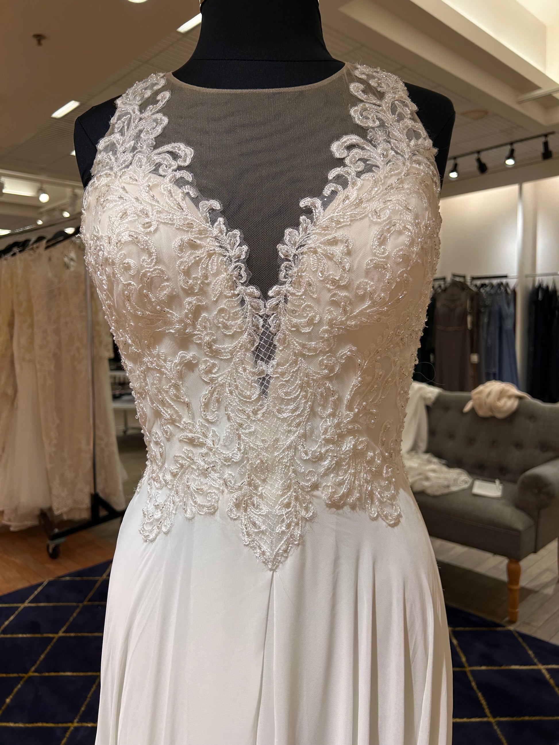 Our bridal samples may have some imperfections. We strongly encourage you to schedule a virtual appointment to preview your favorite gowns!