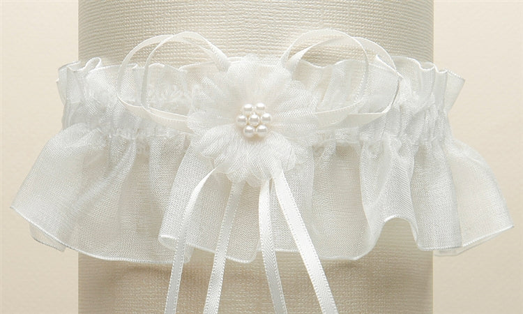 Organza Bridal Garters with Baby Pearl Cluster - Ivory