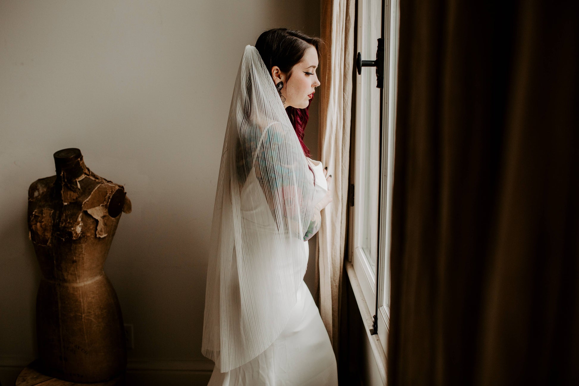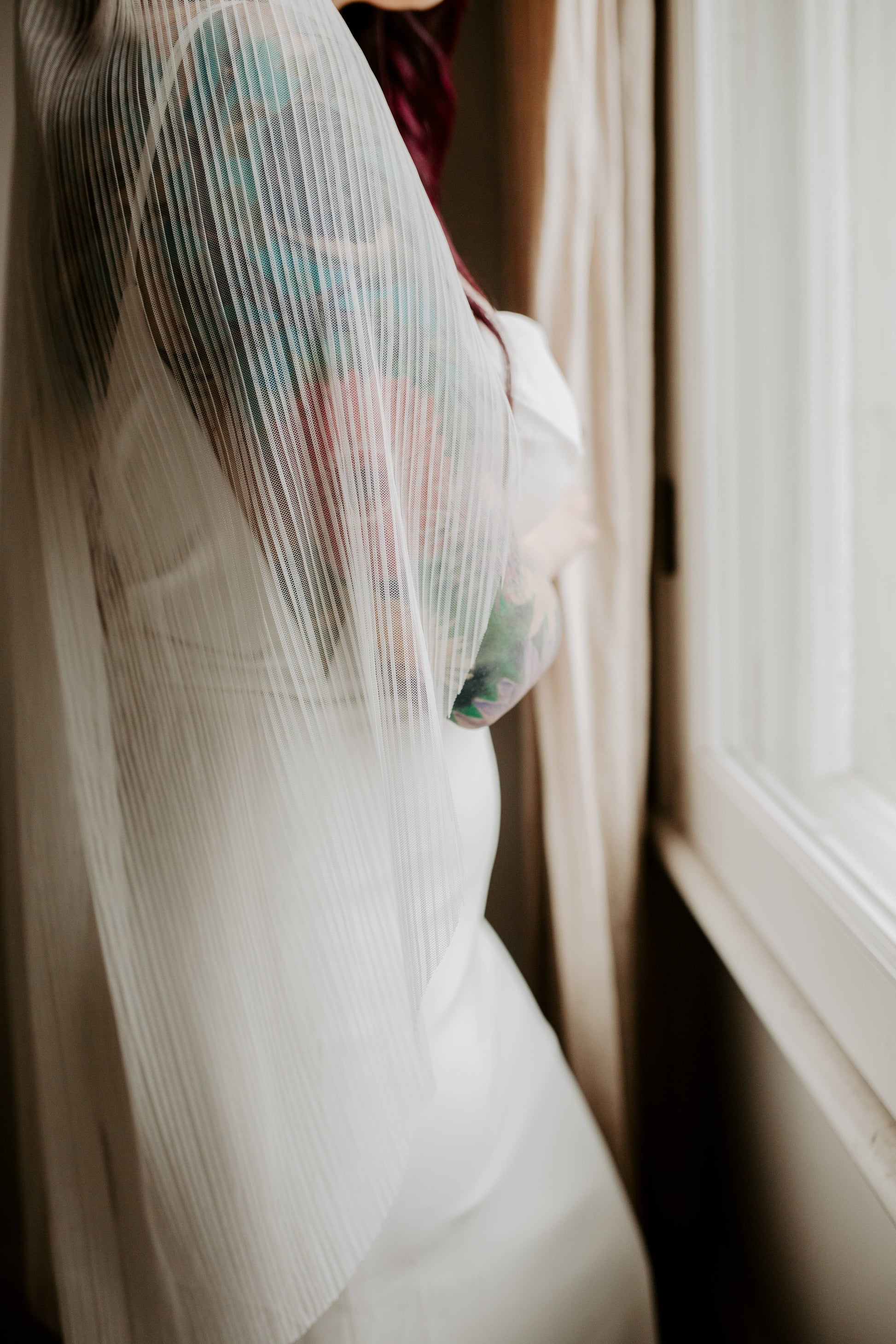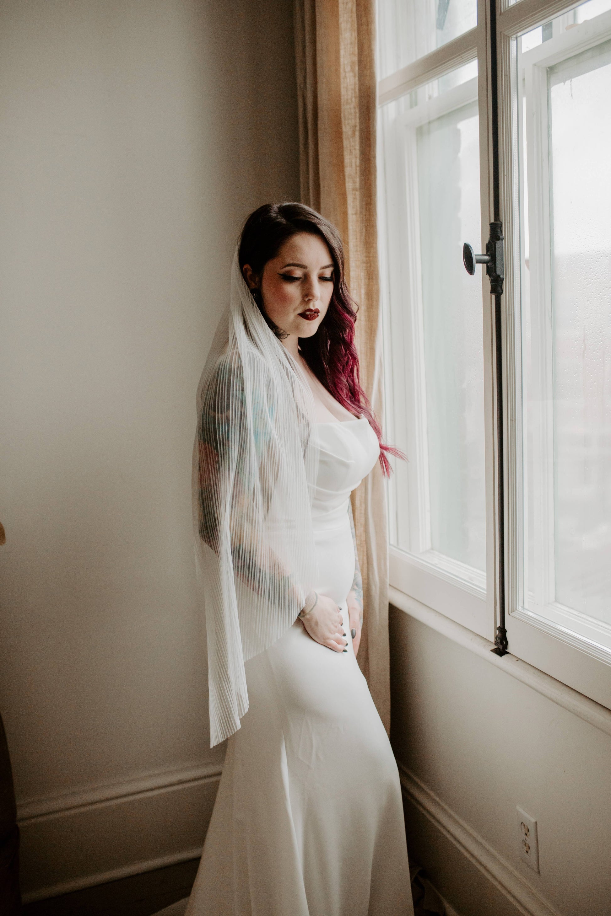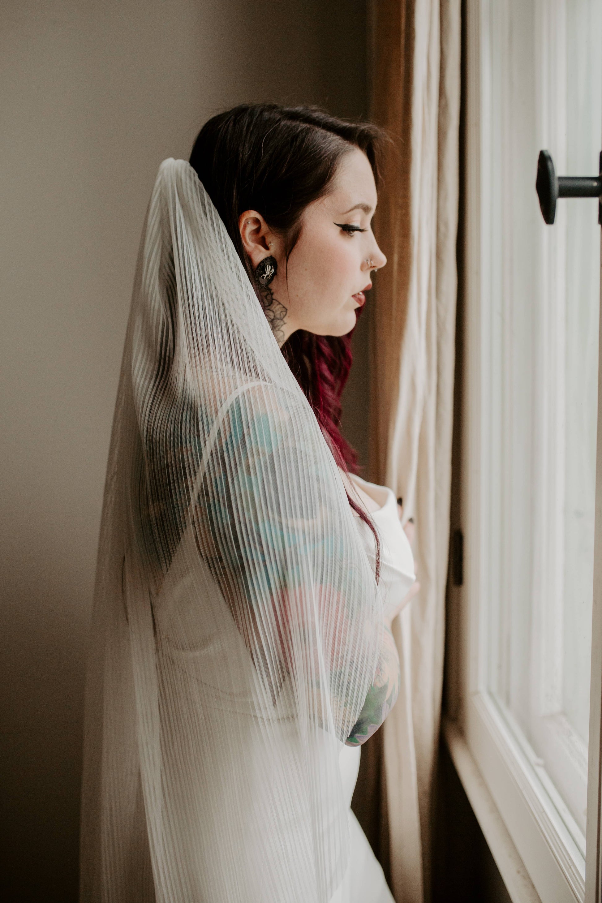 Ruffled Rose Veils - Pleated Tulle Veil