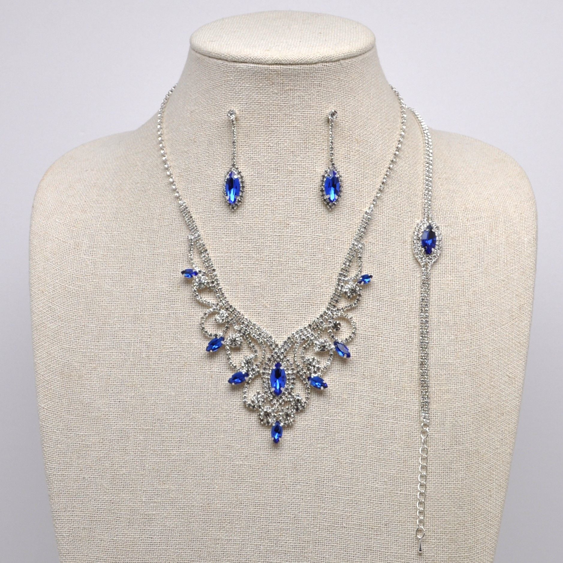 Sapphire Swirly Marquise Three Piece Necklace Set