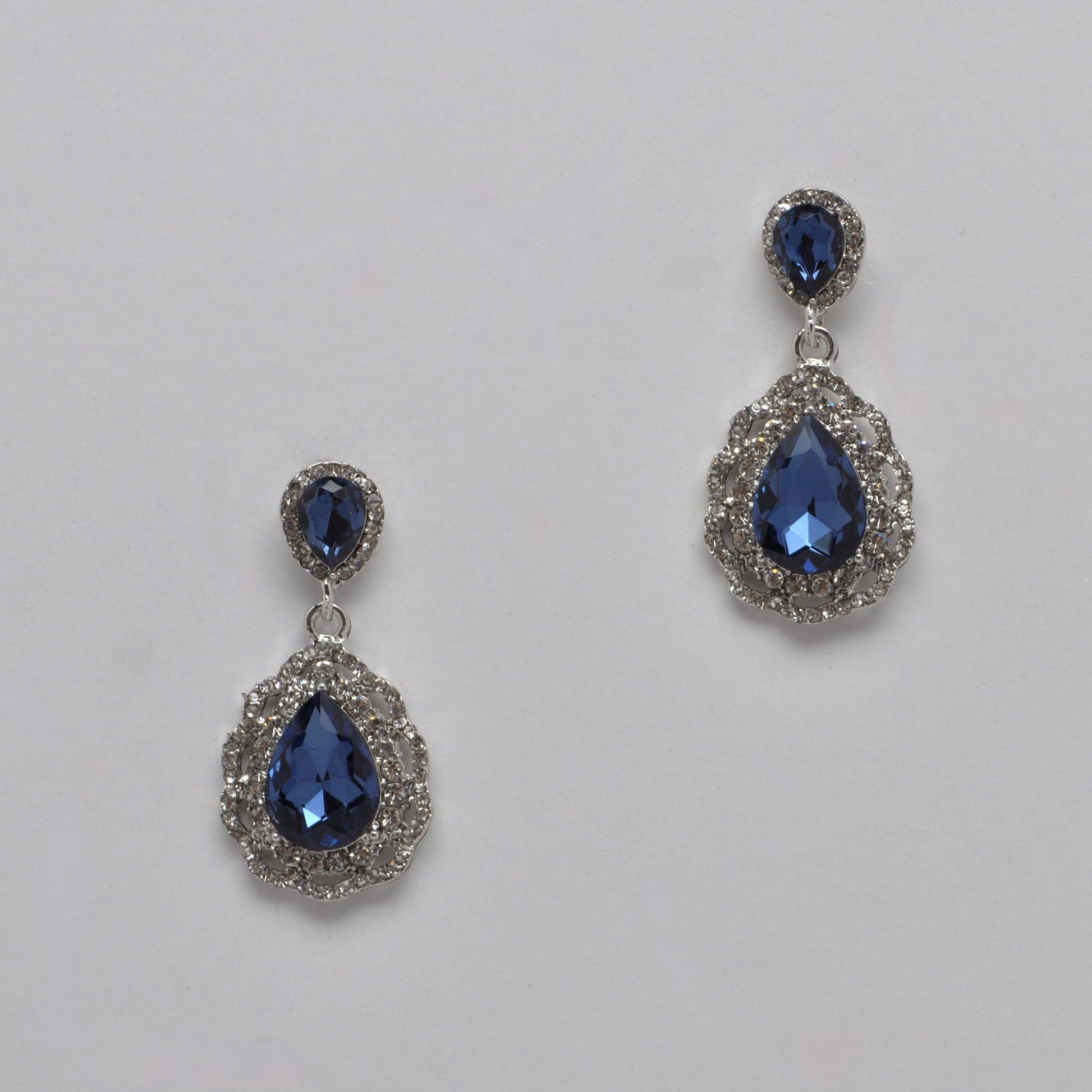 These tear drop hanging earrings feature linked frames that elegantly showcase crystal-clear stones. Their delicate movement and refined design bring a sophisticated allure, making them an exquisite choice for both formal events and polished everyday looks.