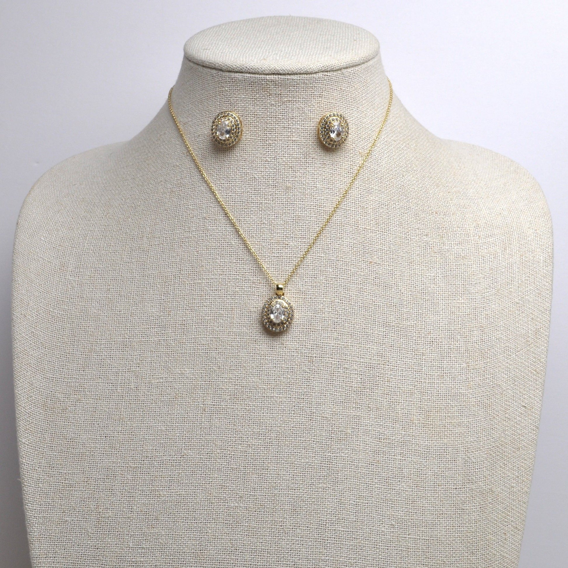 This framed oval earrings and necklace set features elegantly shaped stones encased in delicate frames, creating a cohesive and polished look. The 18-inch necklace pairs seamlessly with the earrings, offering a sophisticated ensemble perfect for special occasions or elevating everyday elegance.