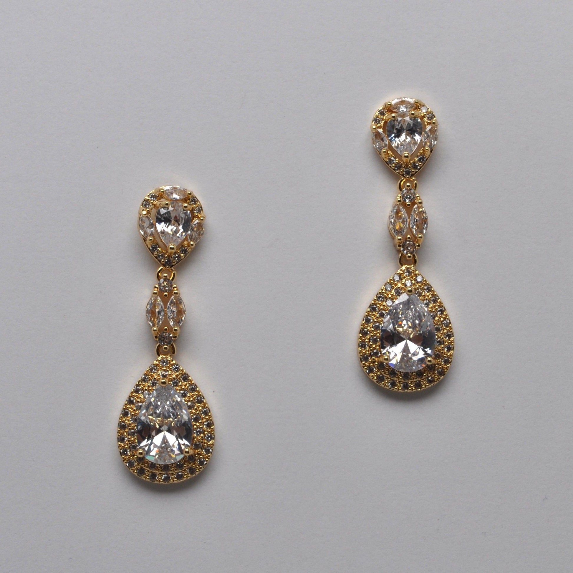 These framed dangling earrings feature three linked teardrop elements, each finely crafted to create a graceful silhouette. Their elegant design enhances any outfit with a touch of sophistication, making them perfect for both formal occasions and refined everyday wear.